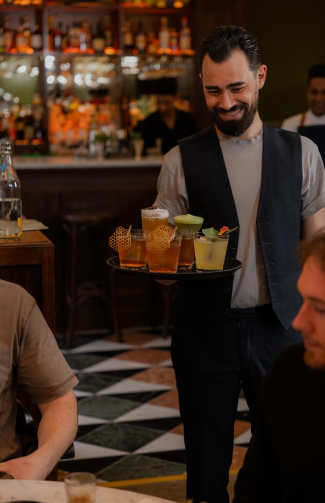 The décor at this fantastic restaurant is a mix of modern and traditional with strong ‘back room of the pub’ vibes – well, it is in the back room of a pub after all! The dark green walls, deep burgundy leather chairs, with dark wood accents and chequerboard floors give this desi-style pub cafe a cosy feel where you instantly feel at home. Not to mention, the service is welcoming and attentive too.